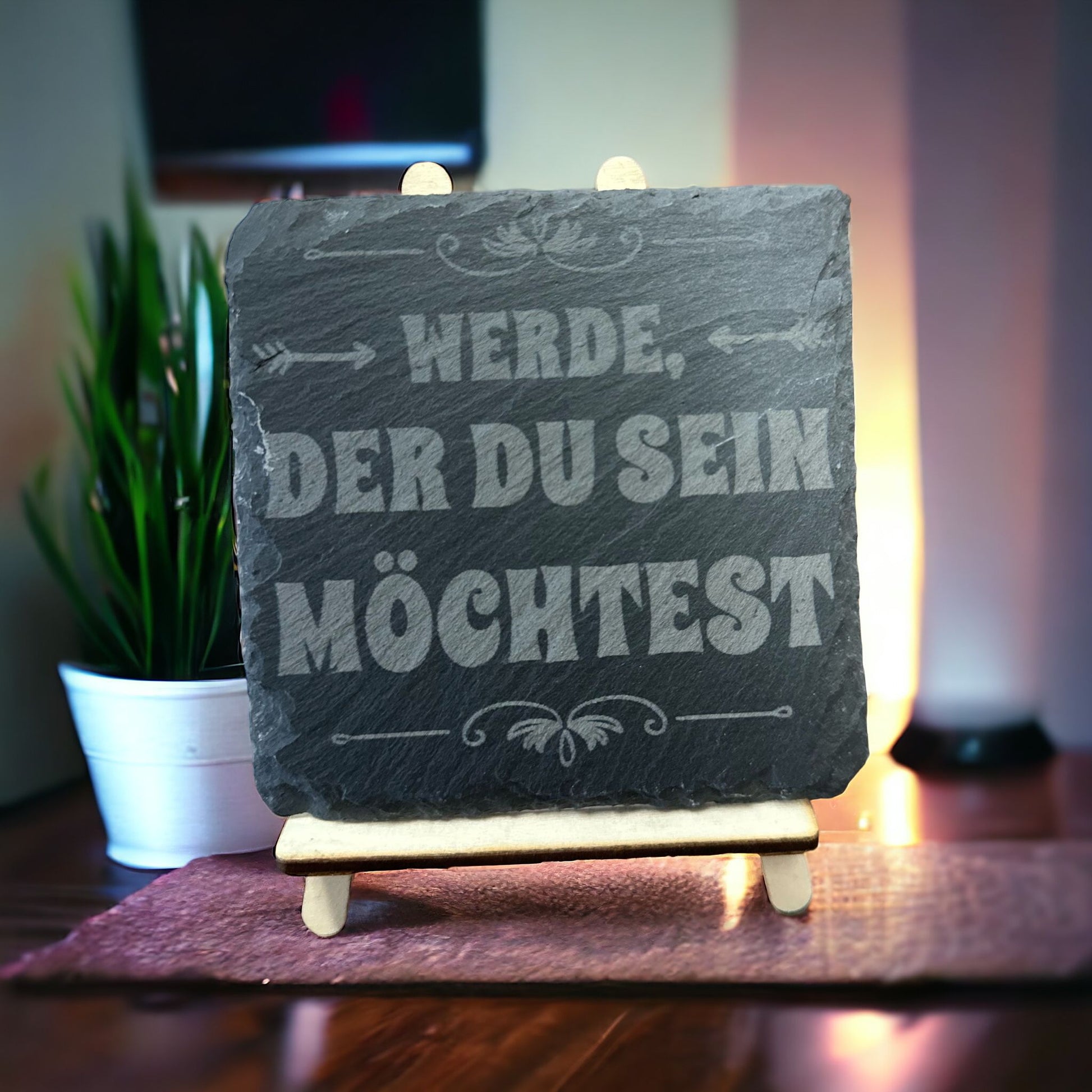 Schiefer Untersetzer " WERDE, DER DU SEIN MÖCHTEST"