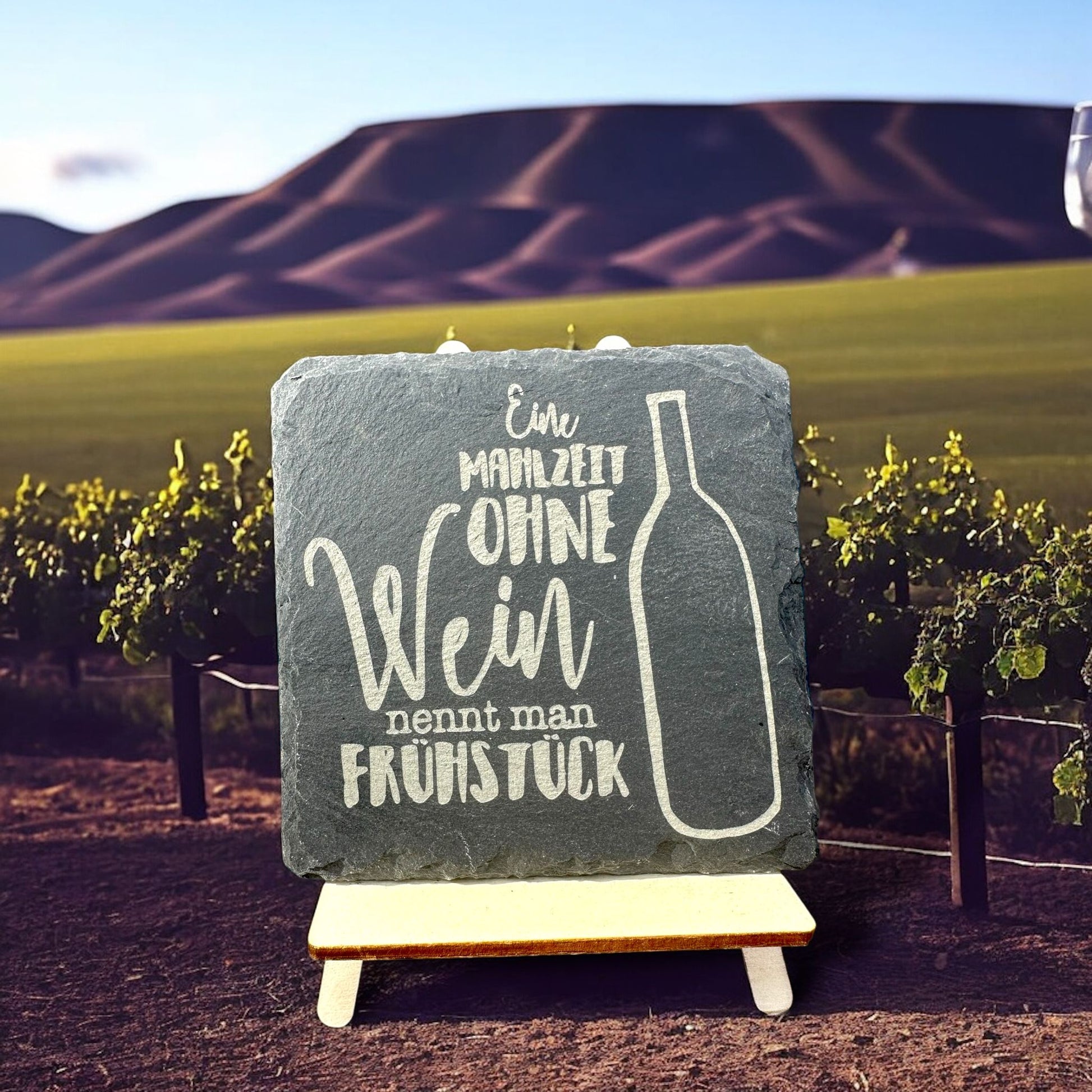 Schieferuntersetzer " Eine Mahlzeit ohne Wein nennt man Frühstück"