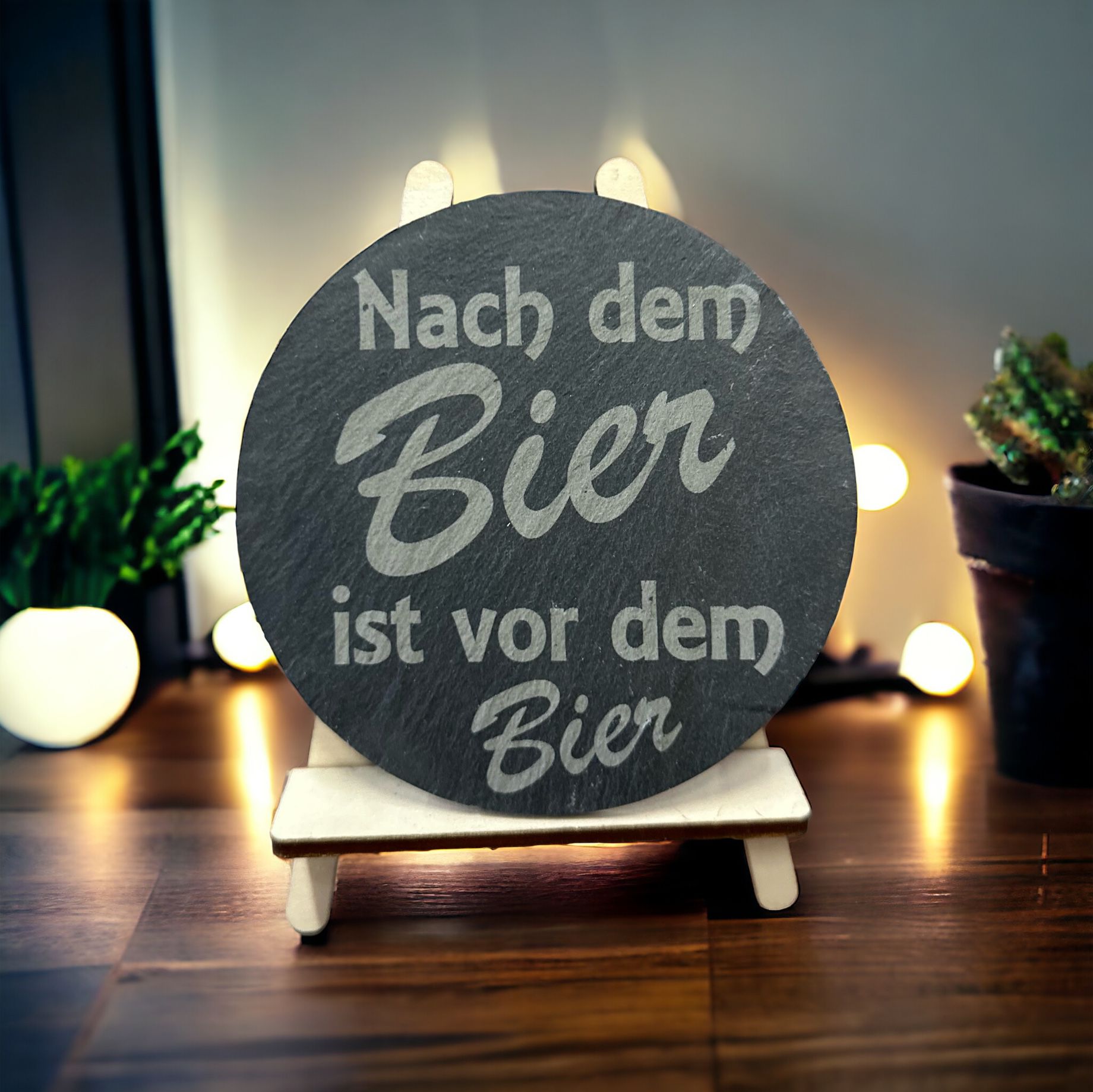 Schieferuntersetzer "Nach dem Bier ist vor dem Bier"