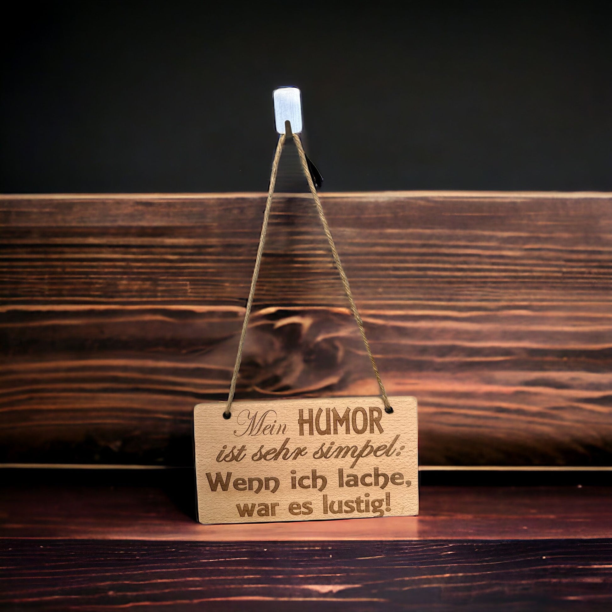Holzschild Buche "Mein Humor ist sehr simpel: Wenn ich lache, war es lustig!"