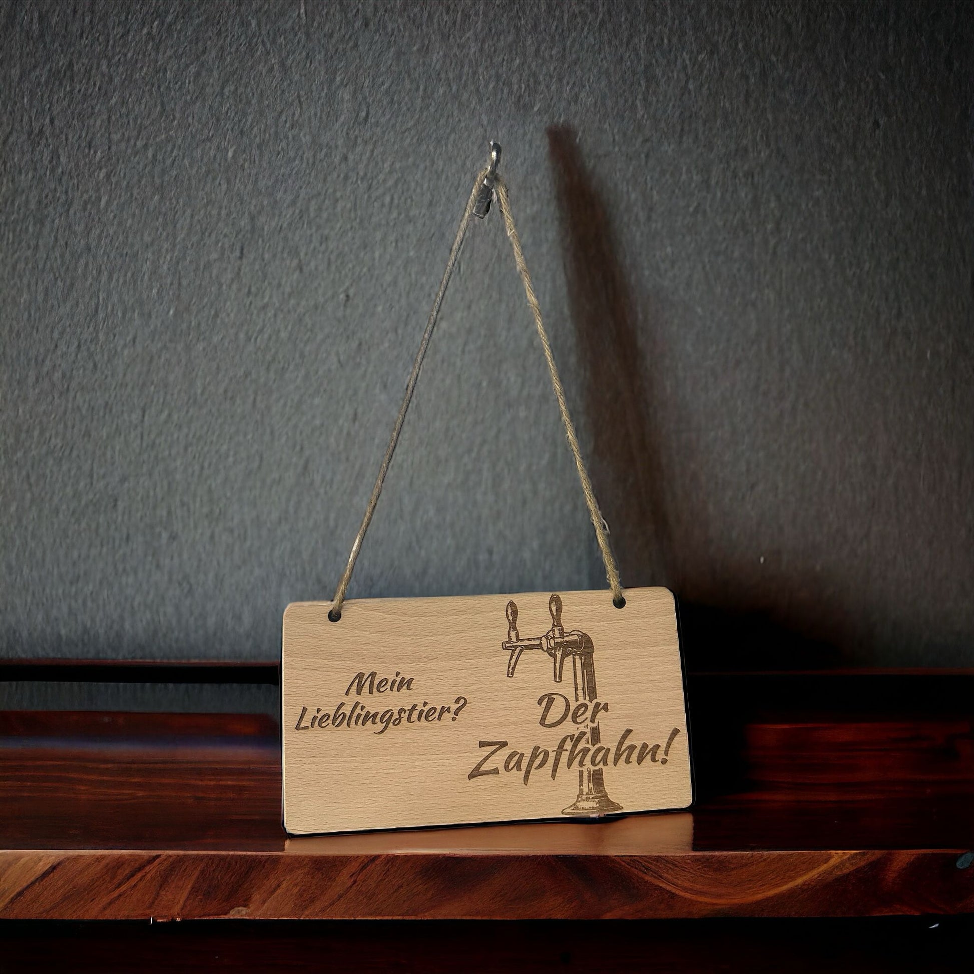 Holzschild Buche " Mein Lieblingstier? Der Zapfhahn!"