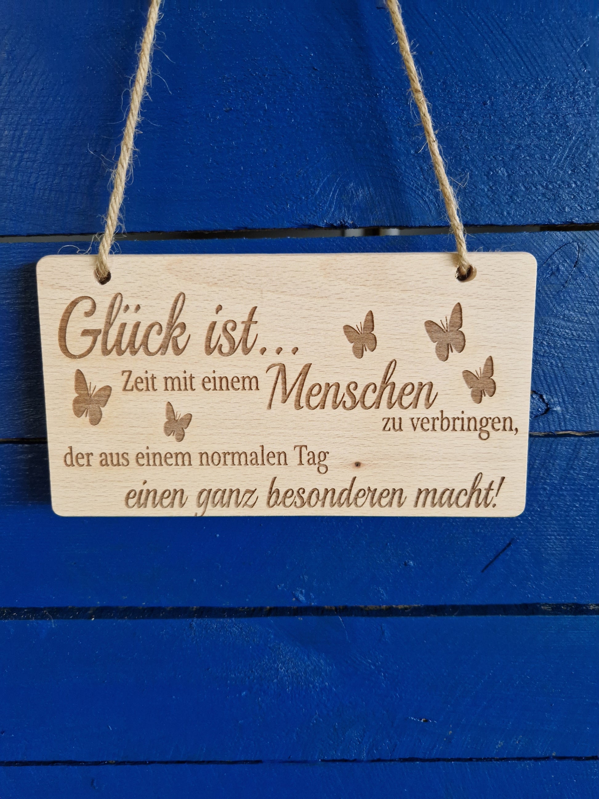 Holzschild Buche "Glück ist... Zeit mit einem Menschen zu verbringen, der aus einem normalen Tag einen ganz besonderen macht!"